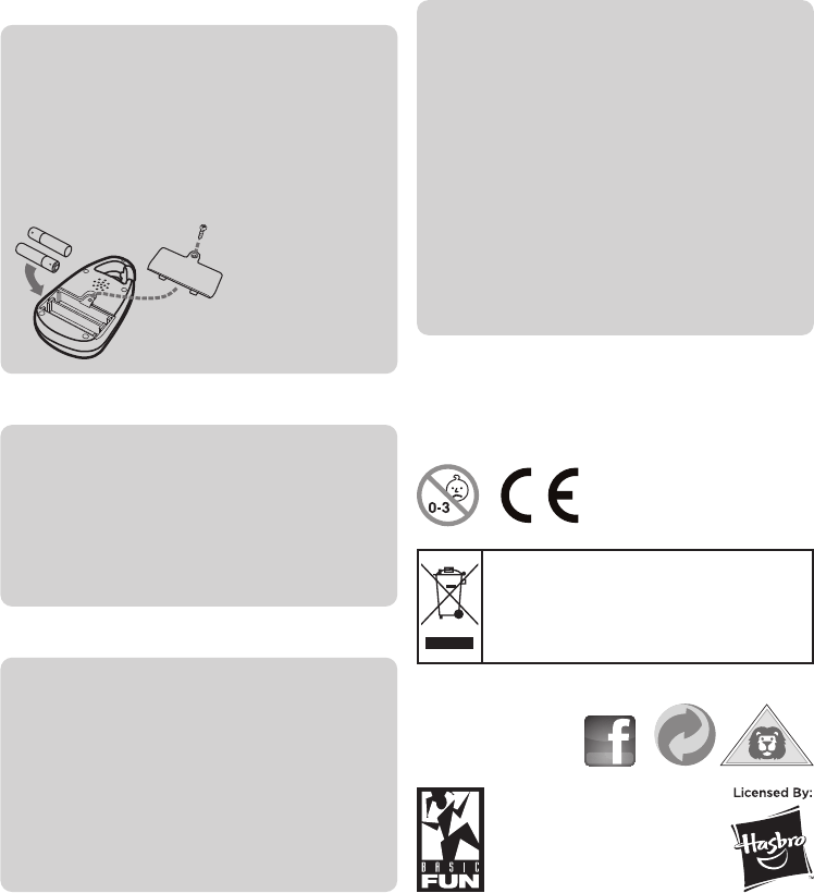• Exhausted batteries are to be removed from the toy.